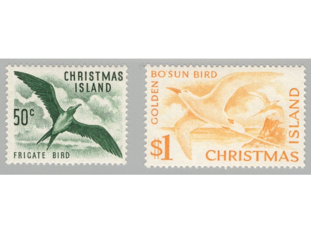 Austrálie - Vánoční ostrov 1963, Mi. 19-20, x 50 c a 1 $ Ptáci, s nálepkou