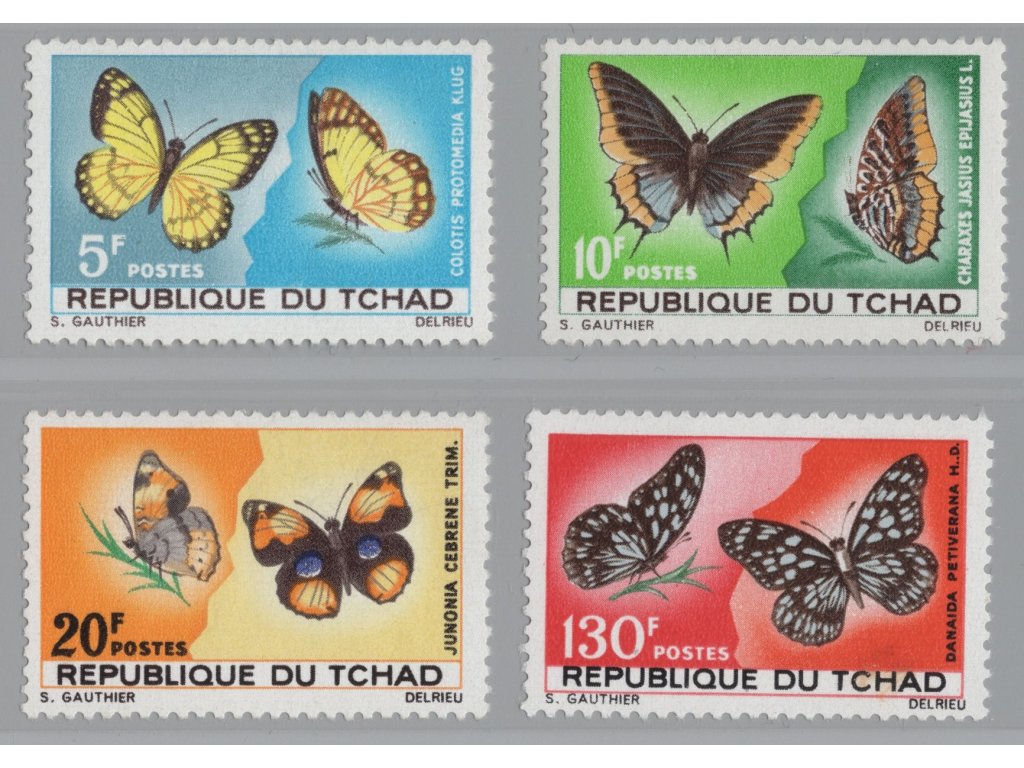 Čad 1967, Mi. 174-7, x/xx Motýli (dv)
