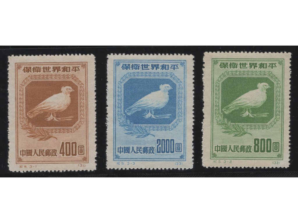 Čína - ČLR 1950, Mi. 57-9 I, (x) Holubice, první náklad