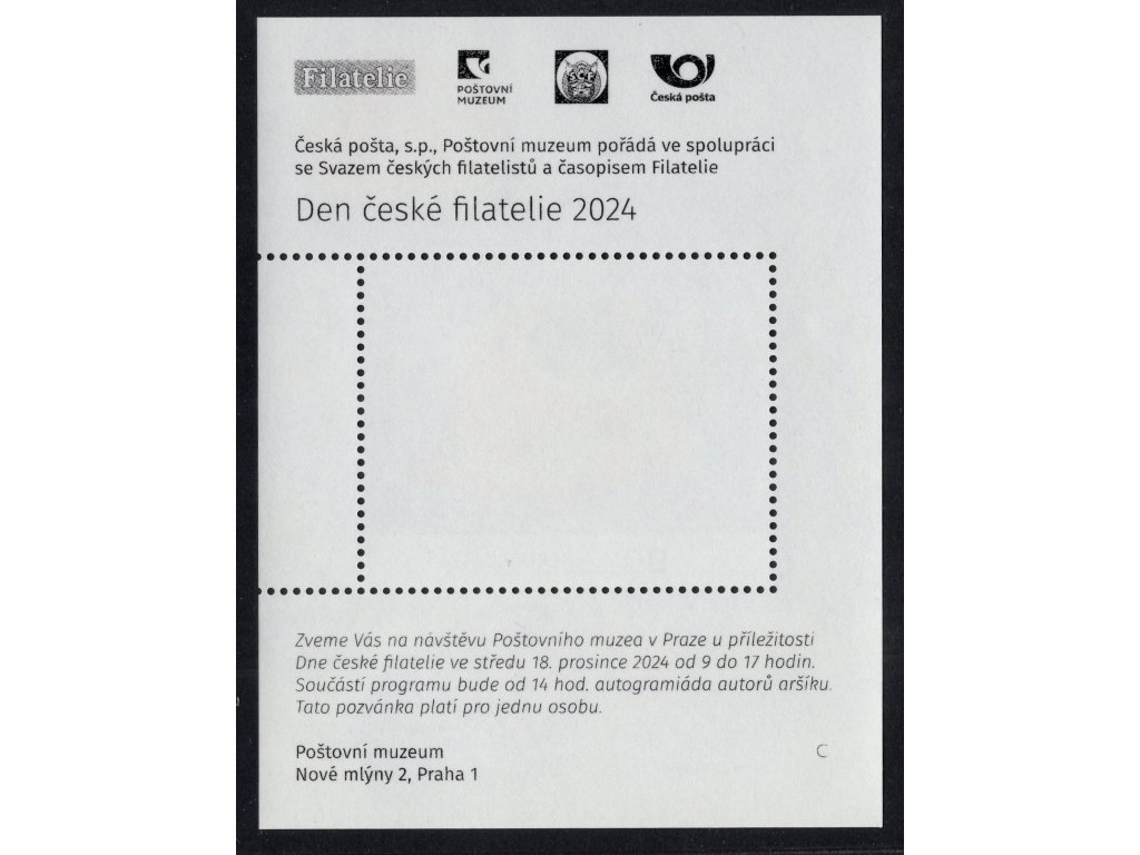 ČR 2024, xx VZ aršík Den české filatelie - vzadu pozvánka pro členy Klubu Filatelie