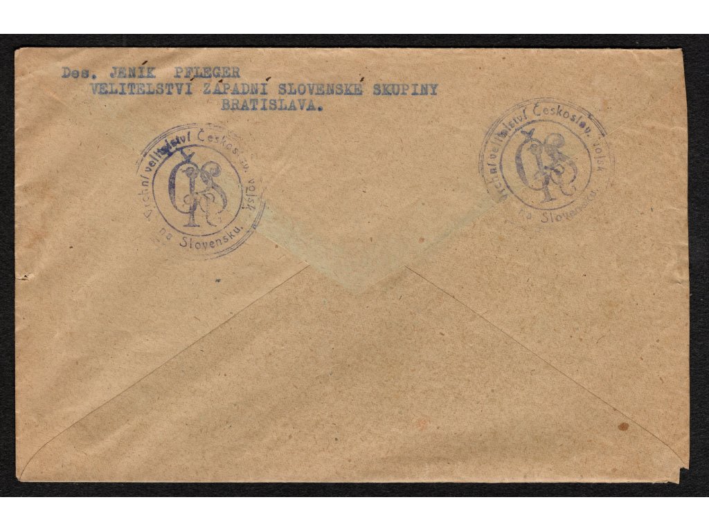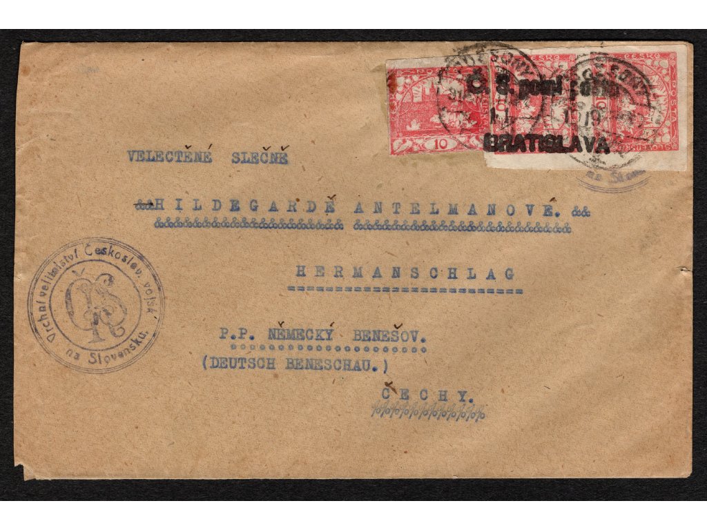 ČSR I 1918, ⌧︎ těžší dopis velitelství vojska na Slovensku, vyplacený 3x 10 h Hradčany