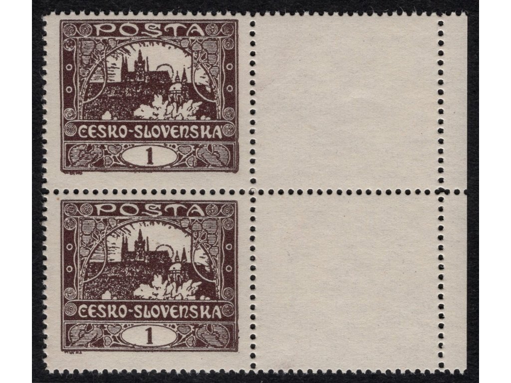 ČSR I 1918, Pof. 1C, xx 1 h Hradčany, 2-páska ze ZP 30+40/2, s "kupony"