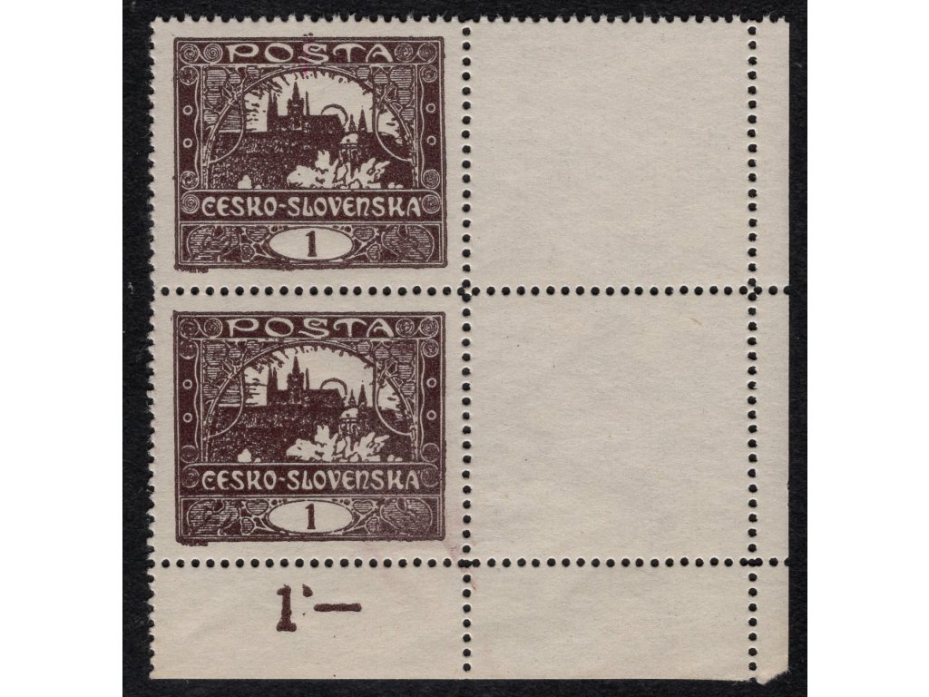 ČSR I 1918, Pof. 1C, xx 1 h Hradčany, PD 2-páska z TD 2, s "kupony"