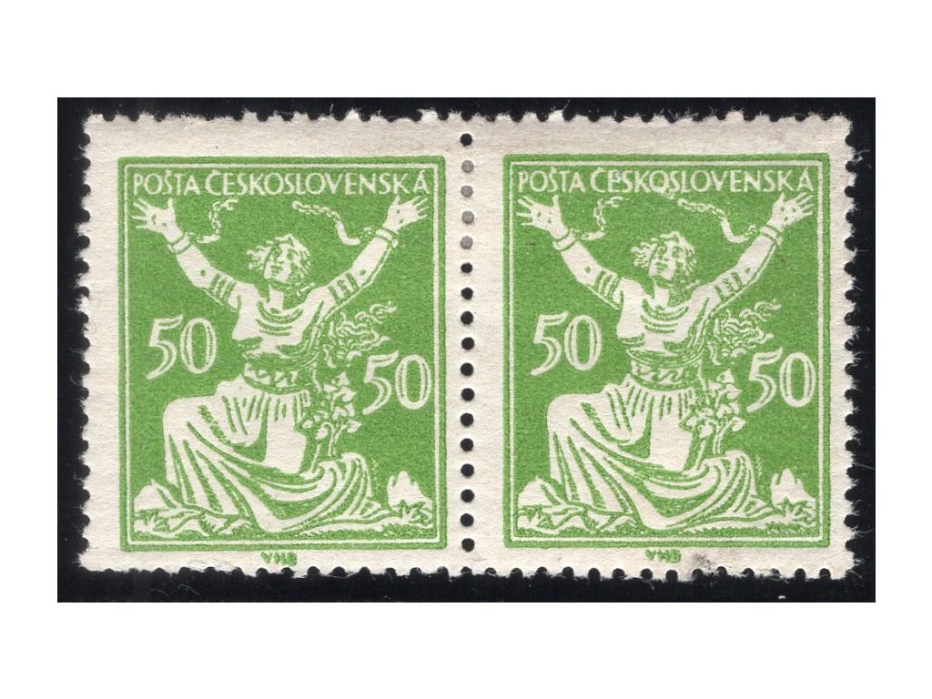 ČSR I 1920, Pof. 156 2-páska, x 50 h OR zelená, retuš vajíčka, ZP 39/3