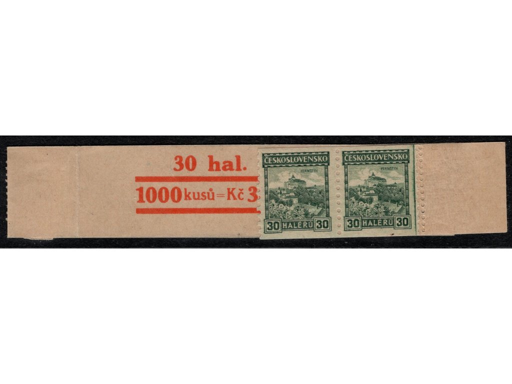 ČSR I 1926, Pof. 210A P7, xx 30 h Hrady, svitek, 2-páska se zaváděcí páskou a dělící čárou