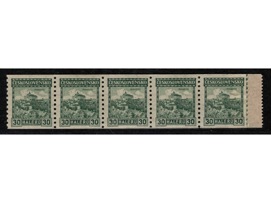 ČSR I 1926, Pof. 210A P7, xx 30 h Hrady, svitek, 5-páska - zaváděcí část s další perforací