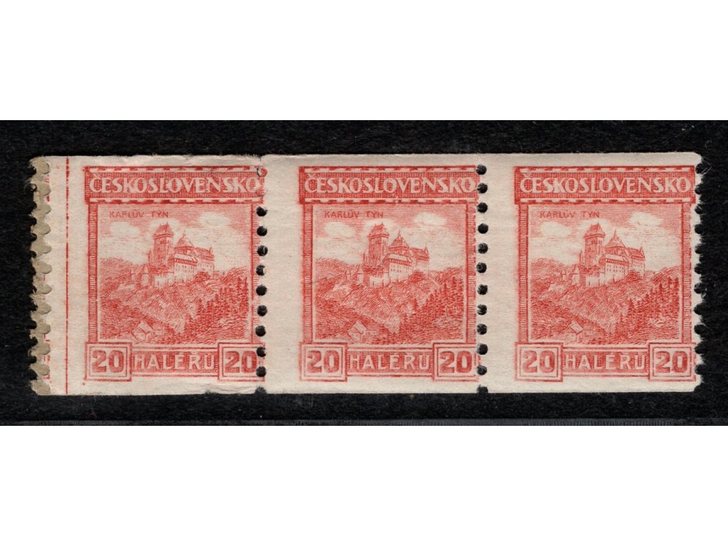ČSR I 1926, Pof. 216, xx/x 20 h Hrady, 3-páska - zaváděcí kus se svislou čárou