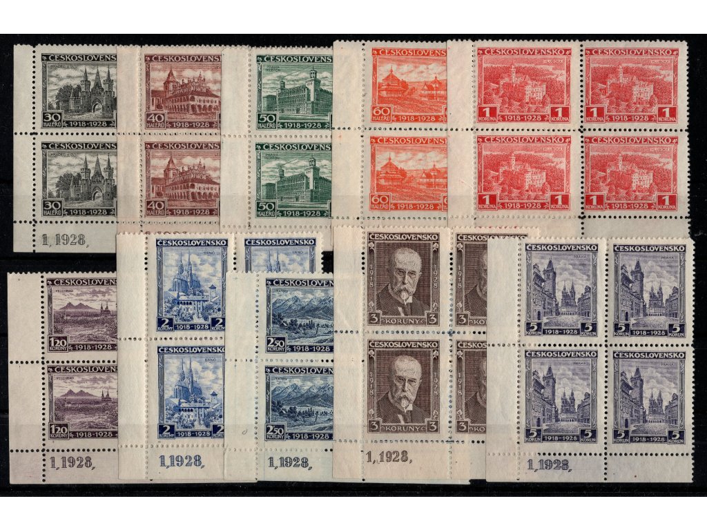 ČSR I 1928, Pof. 233-42 čtyřbloky s DČ, xx 10. výročí vzniku ČSR (Jubilejní)
