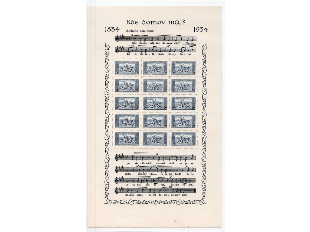 ČSR I 1934, Pof. A284, (x) 2 Kč A KDM? + desky, široký formát, rozměr 172x283 mm, na okraji skvrnka