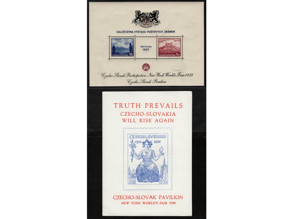 ČSR I 1939, xx Exilový aršík - Bratislava 1937 - New York 1939, s destičkami