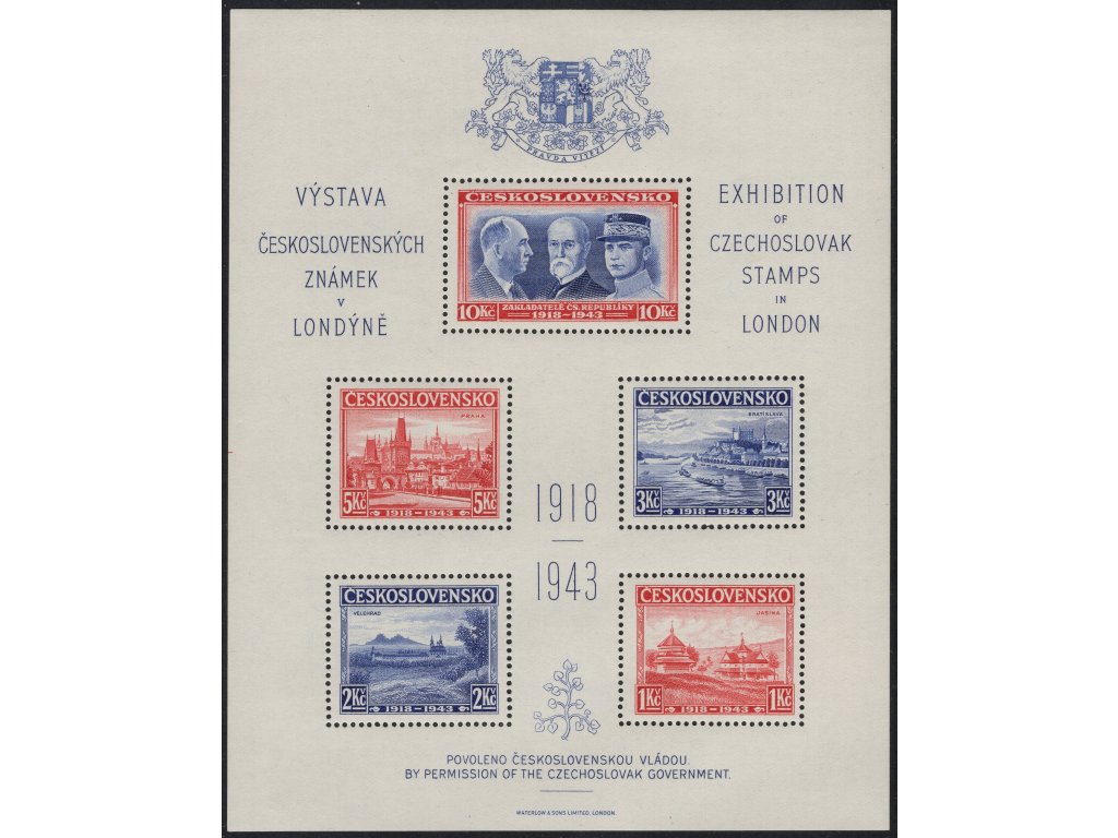 ČSR I 1943, xx Londýnský aršík, desky A/C, stádium perforačního rámce č. 4