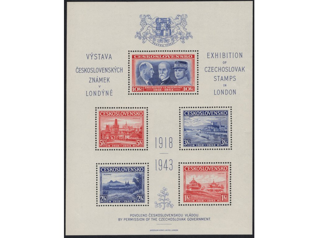 ČSR I 1943, xx Londýnský aršík, desky B/D, stádium perforačního rámce č. 3