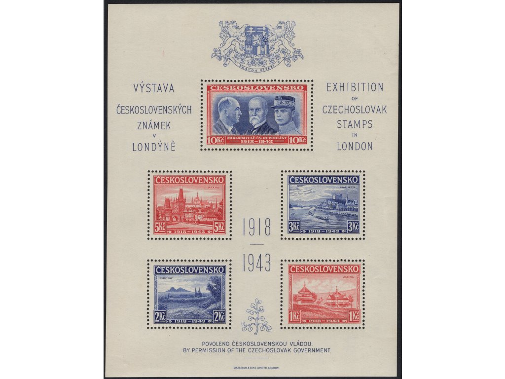 ČSR I 1943, xx Londýnský aršík, desky B/D, stádium perforačního rámce č. 5, méně běžná kombinace, vl
