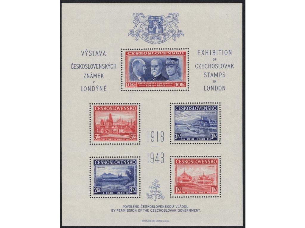 ČSR I 1943, xx Londýnský aršík, desky D/D, stádium perforačního rámce č. 2, méně častá kombinace
