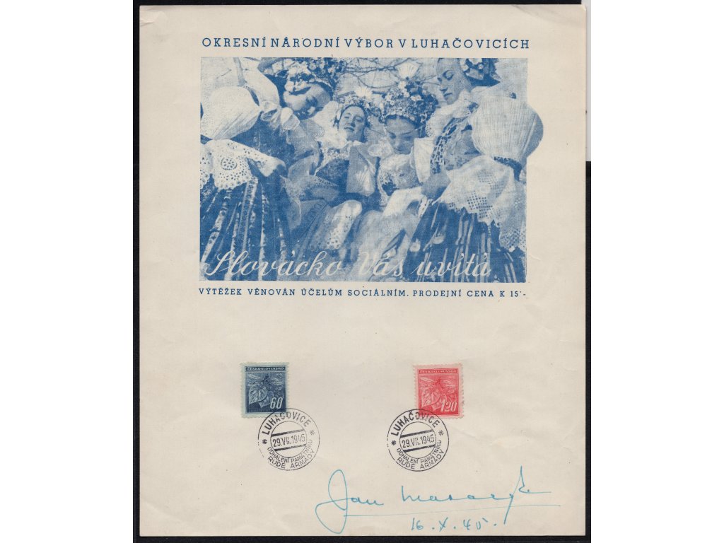ČSR II 1945, pamětní list s podpisem Jana Masaryka