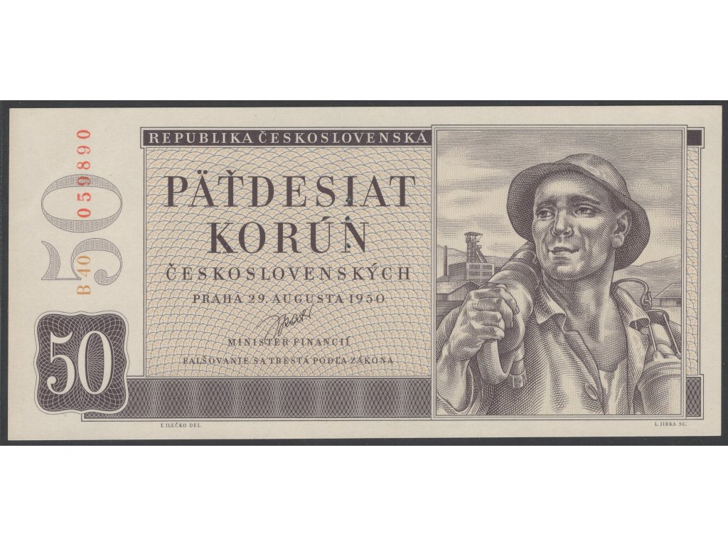 ČSR II 1950, 50 Kčs, Pof. 88, série B, nebyla v oběhu, SPECIMEN