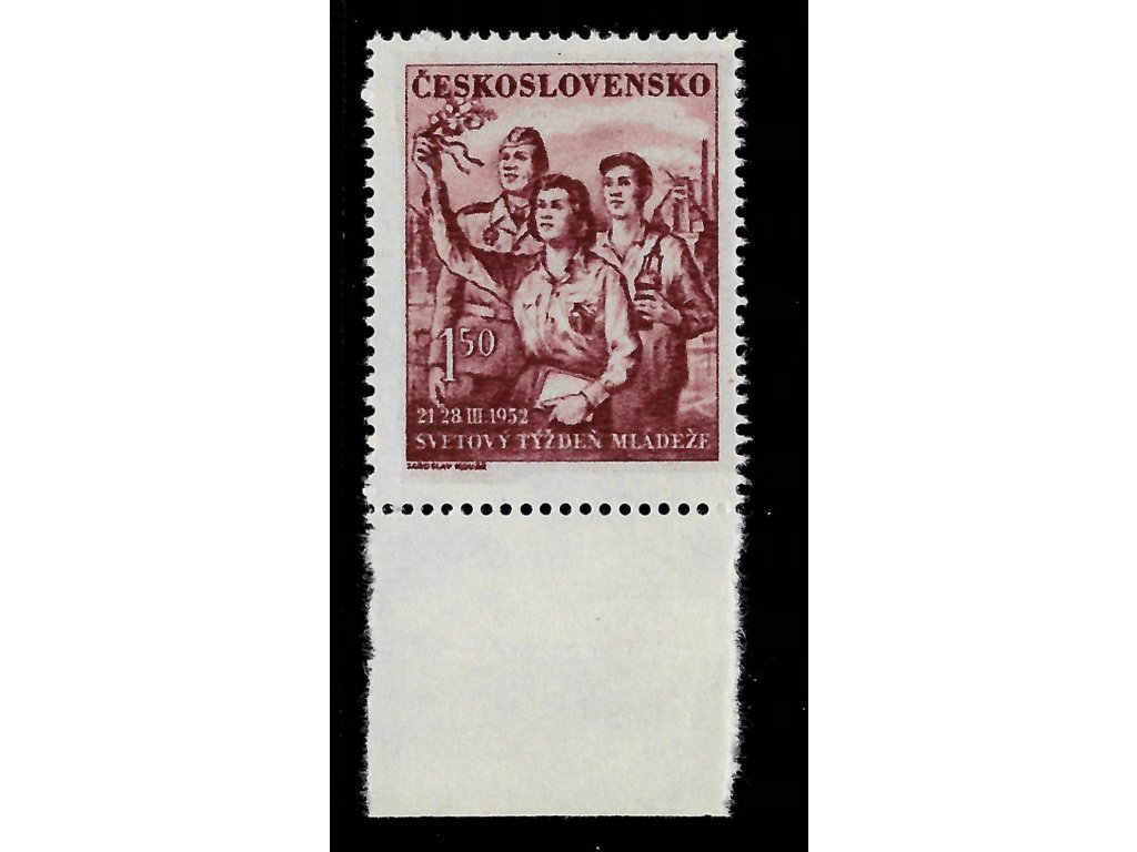 ČSR II 1952, Pof. 637, xx zkusmý tisk ve fialové barvě, s dolním okrajem