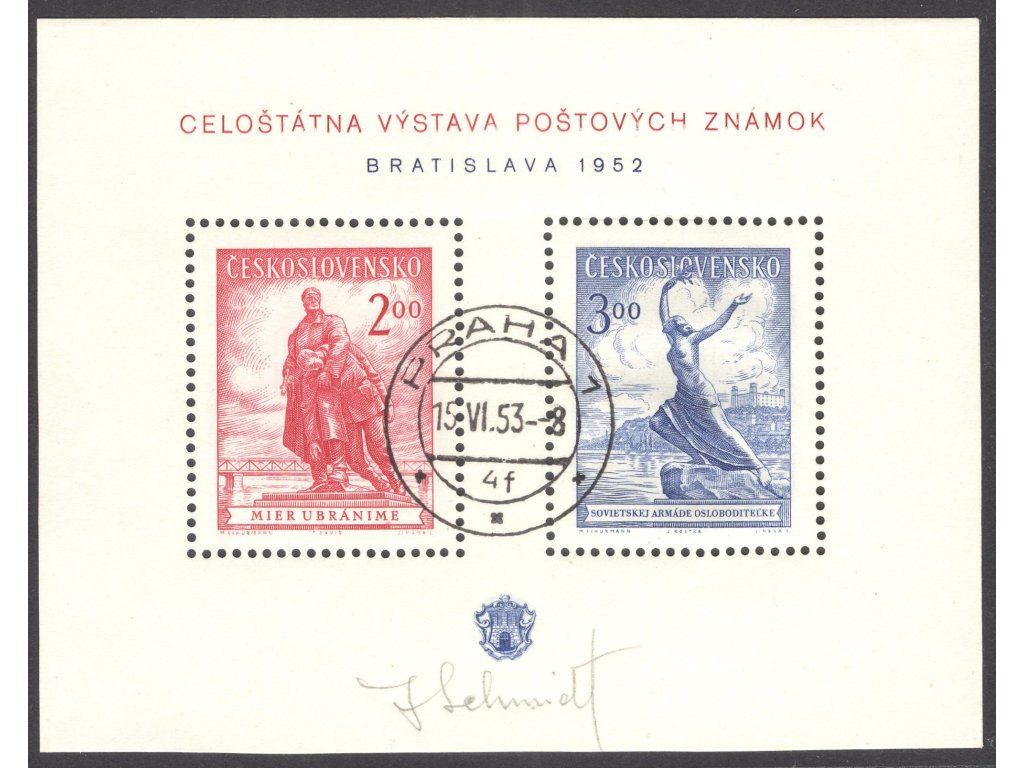 ČSR II 1952, Pof. A 691-2, O A Bratislava s podpisem rytce J. Schmidt, O z měnové reformy!