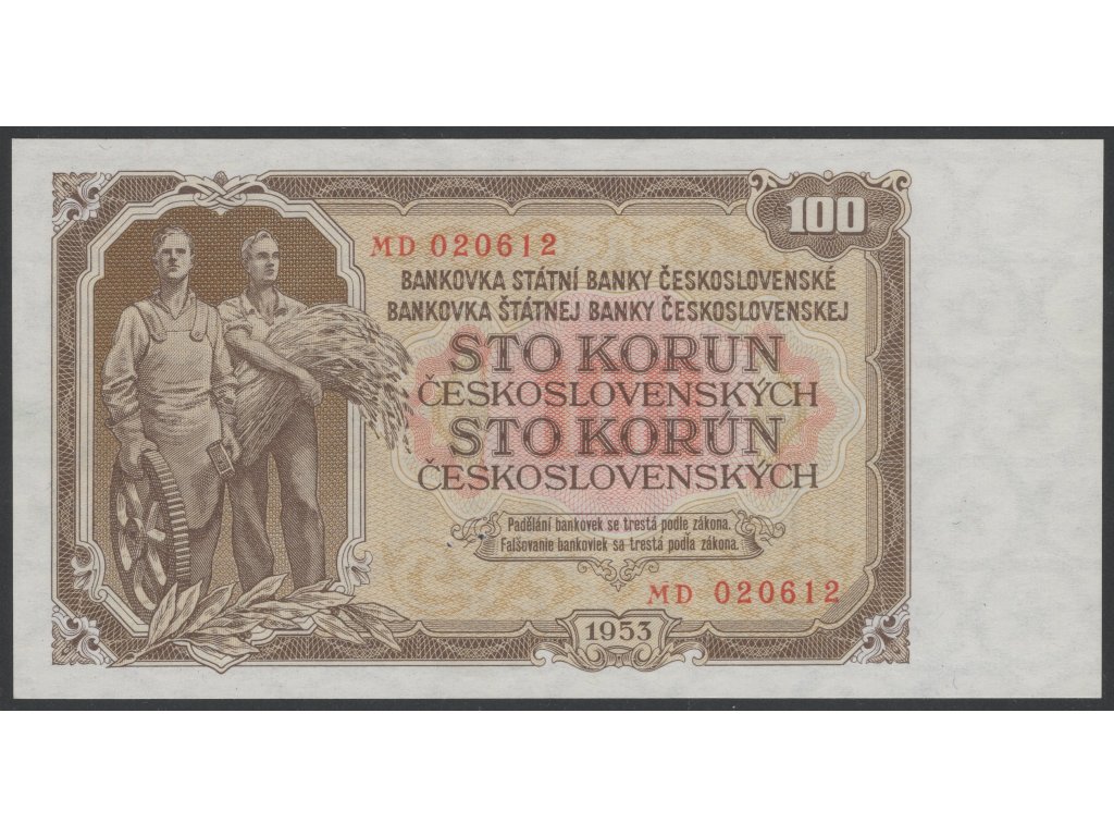 ČSR II 1953, 100 Kčs, Pof. 95, série MD, nebyla v oběhu, SPECIMEN