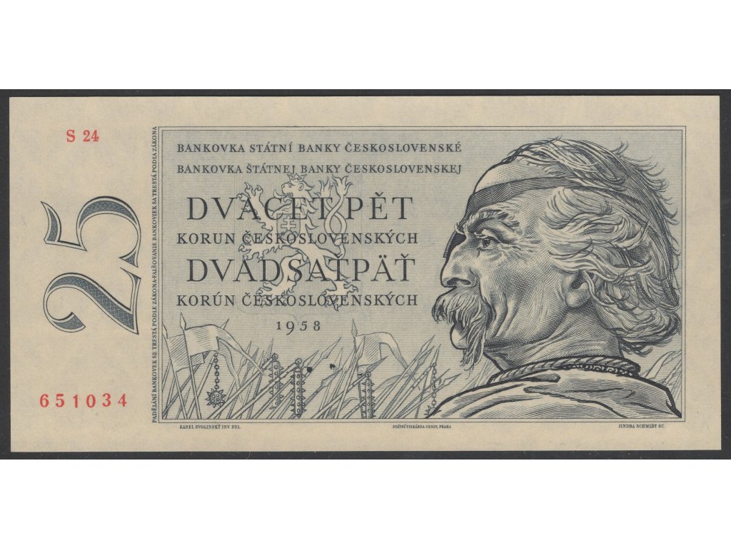 ČSR II 1958, 25 Kčs, Pof. 96, série S, nebyla v oběhu, SPECIMEN