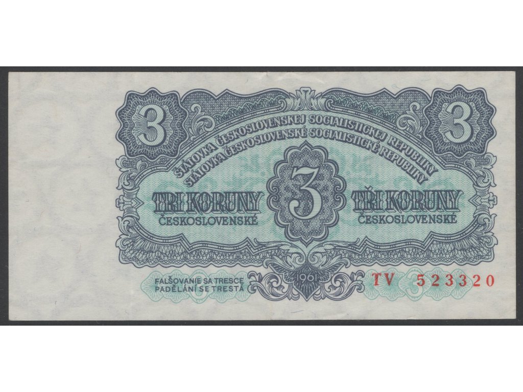 ČSR II 1961, 3 Kčs, Pof. 98, série TV, nebyla v oběhu