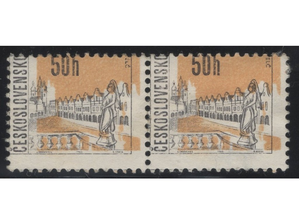 ČSR II 1966, Pof. 1564, x 50 h Telč, VV4 - posun hnědé i zoubkování, 2-páska, na lepu velké stopy po přilepení na papír
