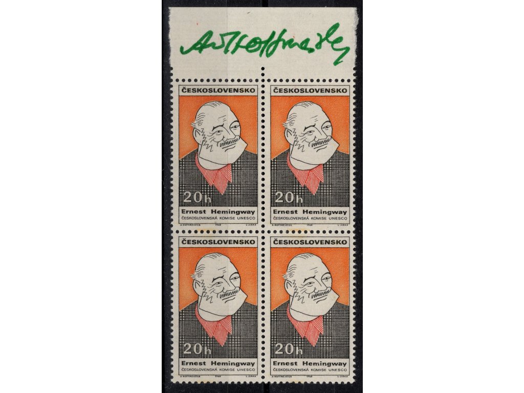 ČSR II 1968, Pof. 1722, xx 20 h Hemingway, čtyřblok s podpisem autora Adolf Hoffmeister