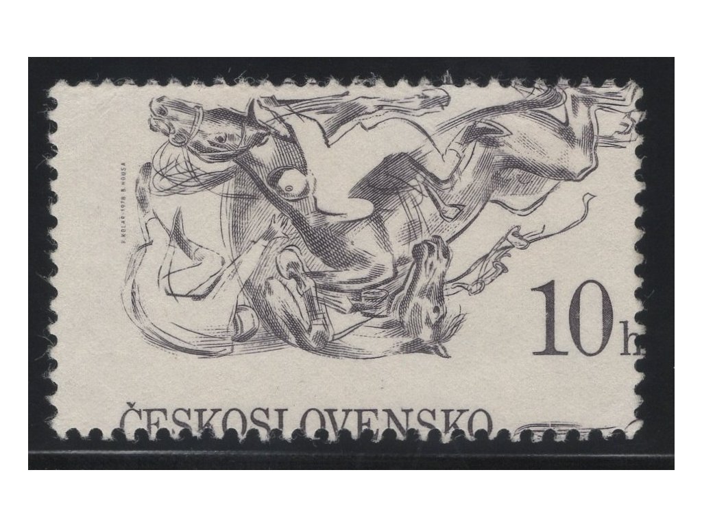 ČSR II 1978, Pof. 2340, (x) 10 h Dostihy, bez HT barev, silně posunuté zoubkování - název státu dole místo nahoře