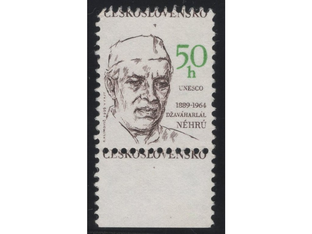 ČSR II 1989, Pof. 2883, (x) 50 h Nehrú, výrazný posun zoubkování - název státu nahoře místo dole, s okrajem