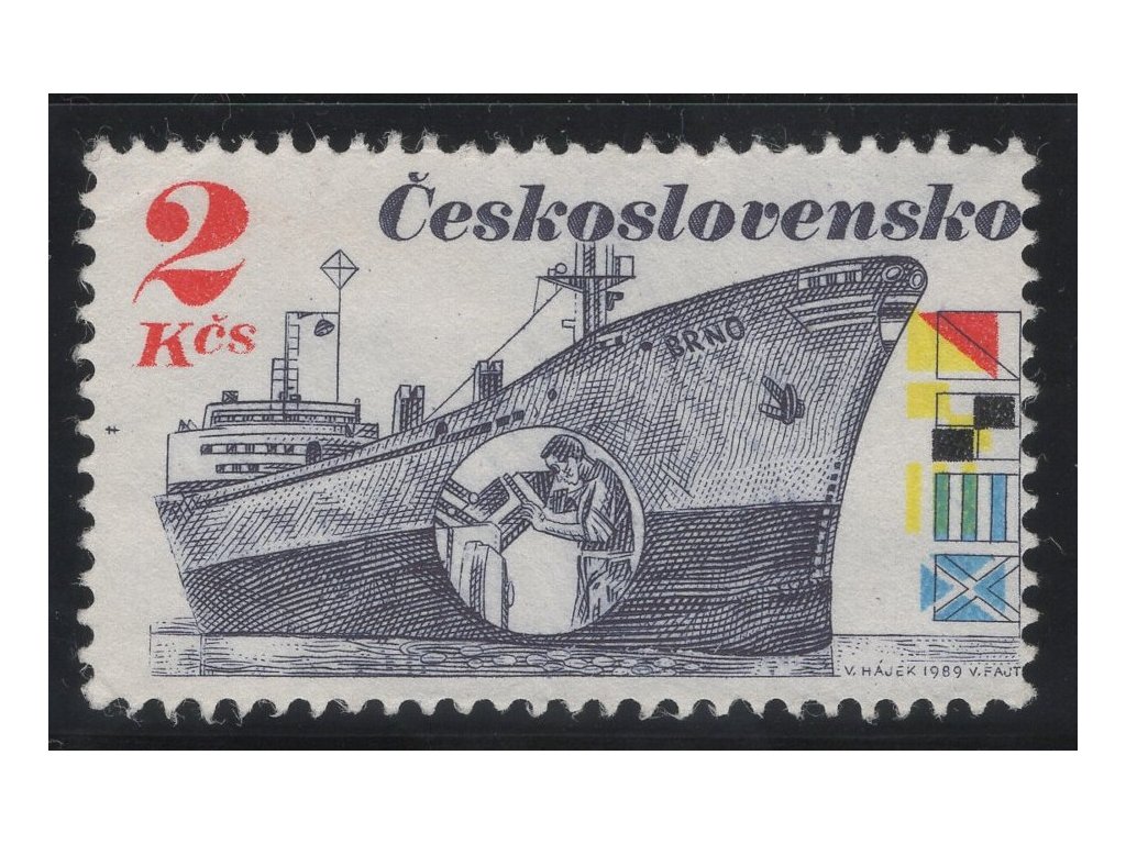 ČSR II 1989, Pof. 2887, (x) 2 Kčs Lodě, výrazný posun HT barev a posun zoubkování - vpravo až k názvu státu, dv