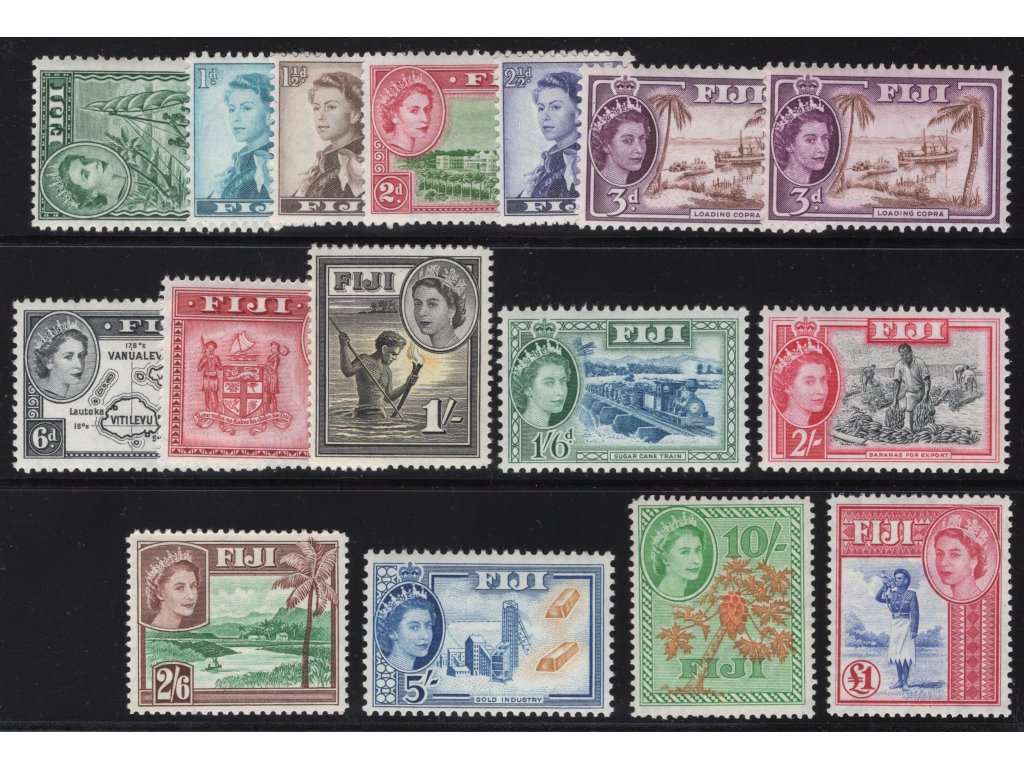 Fidži 1954, Mi. 124-38 (3 d obě varianty), xx výplatní