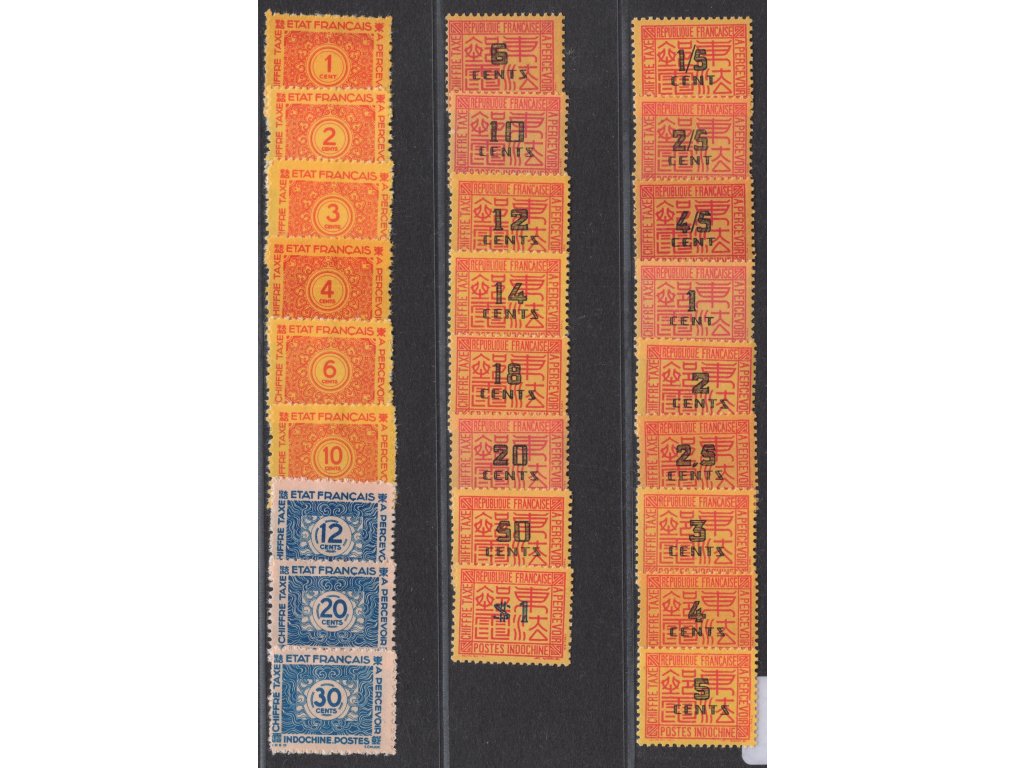 Francouzská Indočína Doplatní 1931-43, Mi. P57-73 + 75-83, x/(x), vl - sleva!