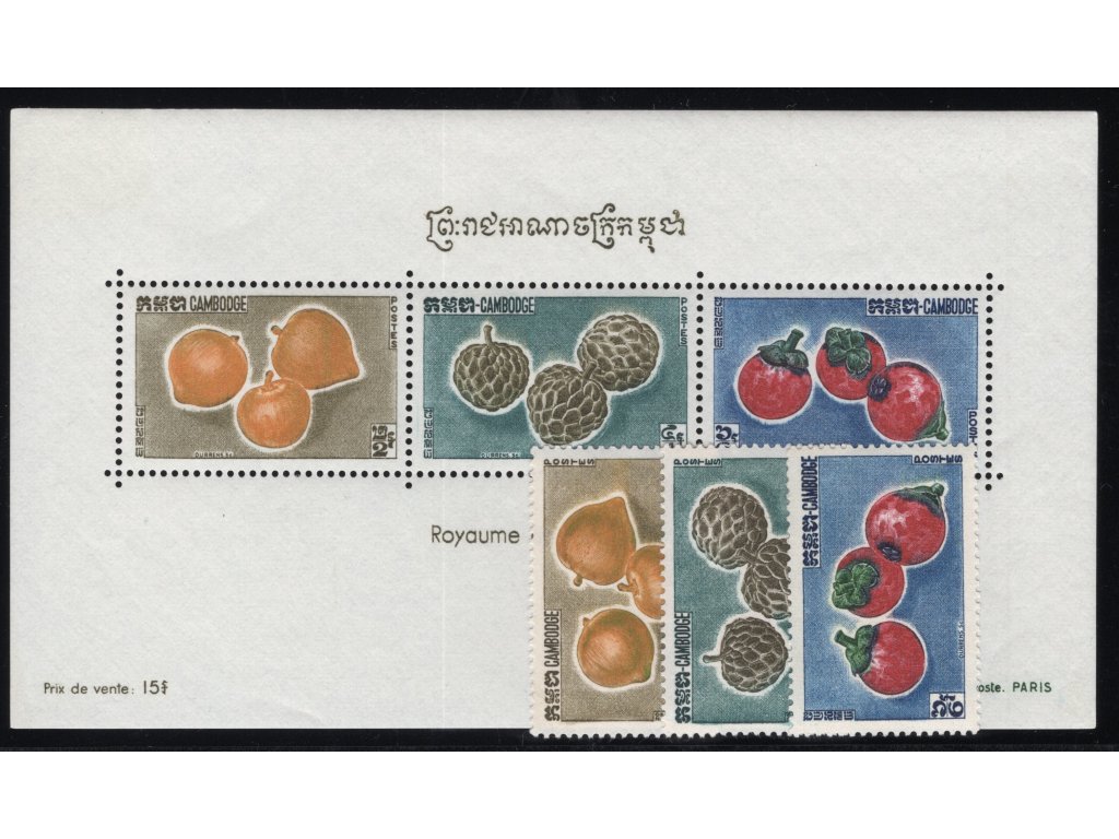 Kambodža 1962, Mi. 140-2 + Bl. 23, xx Ovoce, dv - sleva!