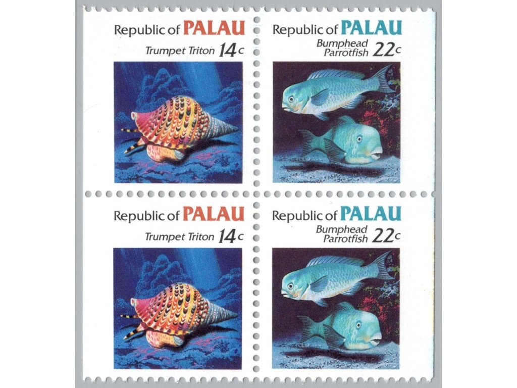 Palau 1985, Mi. 74-5 D, xx 14 + 22 c Moře, 4-blok