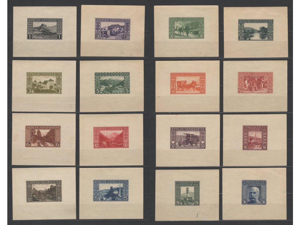 Rakousko - Bosna Hercegovina 1906, Mi. 29-44, (x) Výplatní, zkusmé tisky v původních barvách, v podobě aršíků