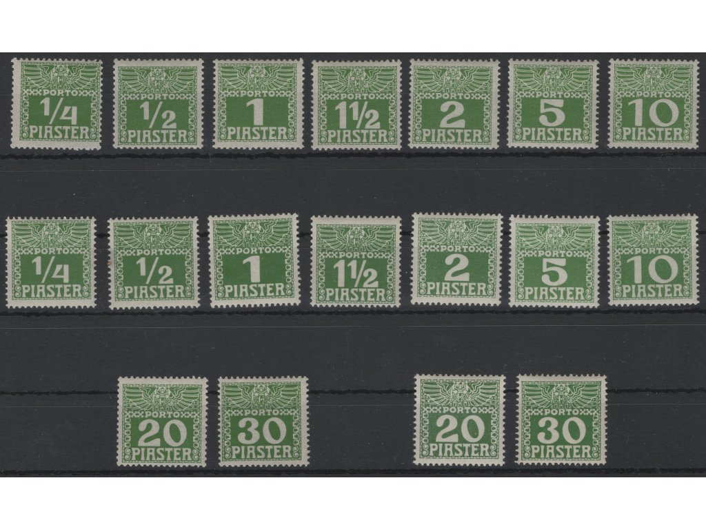 Rakousko - Levanta Doplatní 1909, Mi. P6-14ay + by, xx slabý a obyčejný papír, kompetní soubor, luxusní!