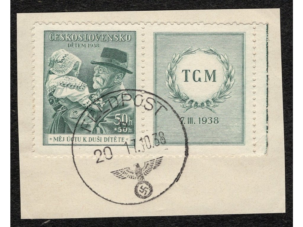 Sudety 1938, Pof. 333 K, △ Dětem, razítko německé polní pošty