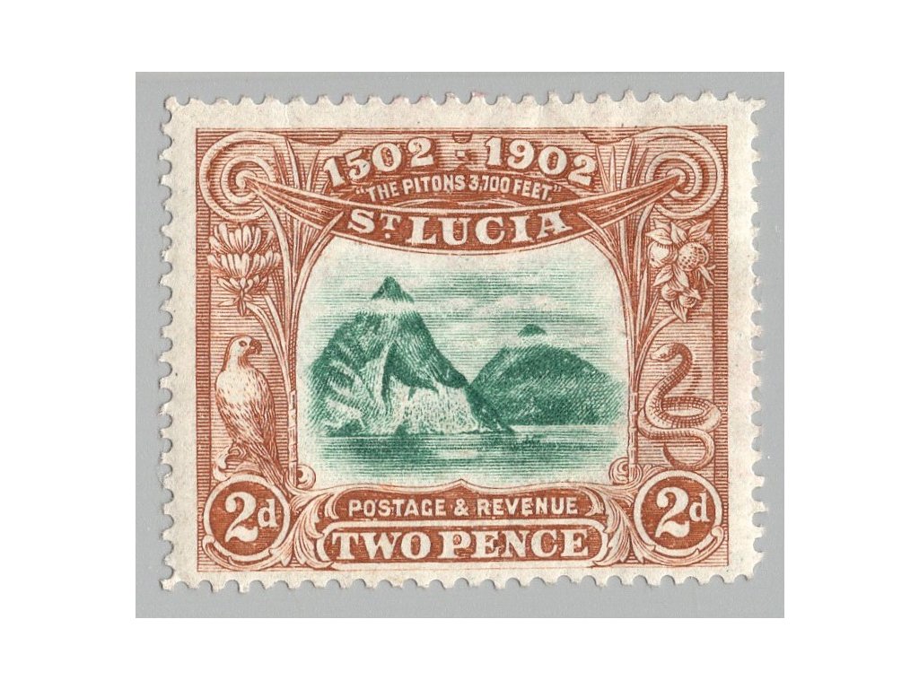 Sv. Lucie 1902, Mi. 34, x 2 d Výročí, vl-sleva!