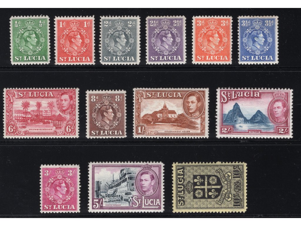Sv. Lucie 1938, Mi. 99 ->, x výplatní 0,5 d - 10 s, sestava 13 ks, opravený lep