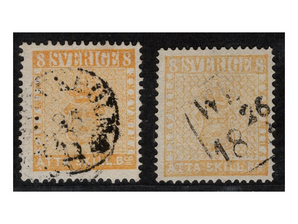 Švédsko 1855, Mi. 4, O 8 sk, dva odstíny