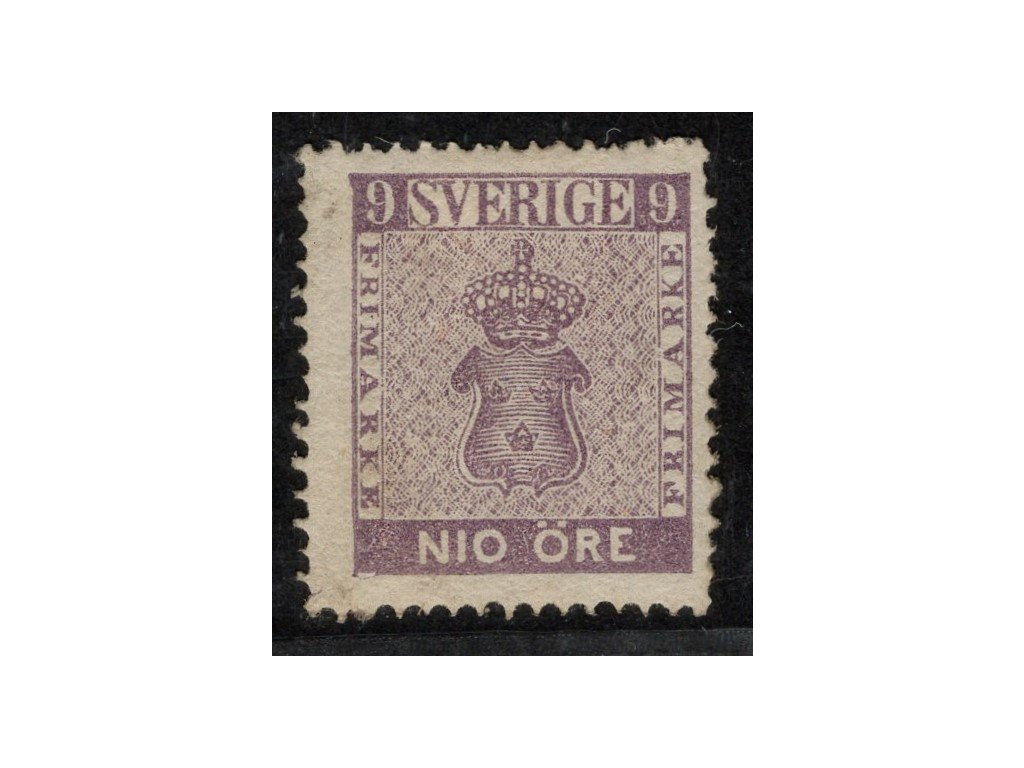 Švédsko 1858, Mi. 8, x 9 ö, světlejší odstín, opravený lep