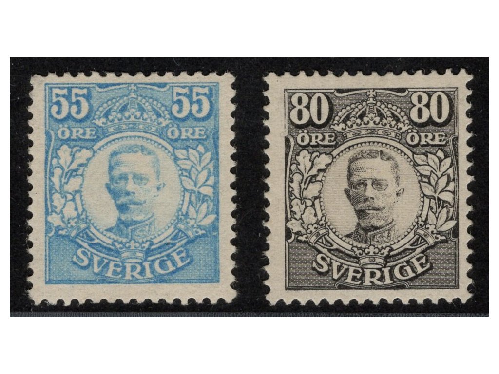 Švédsko 1918, Mi. 84-5, xx Vernamo, náklad jen 1.000 sérií!, zk. Köhler + majitnická značka, KC 50.000 K Facit