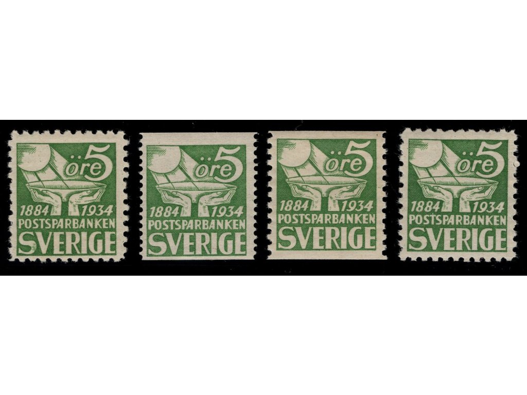Švédsko 1933, Mi. 220 I. + II. A+B, x 5 ö Spořitelna, komplet 4 ks