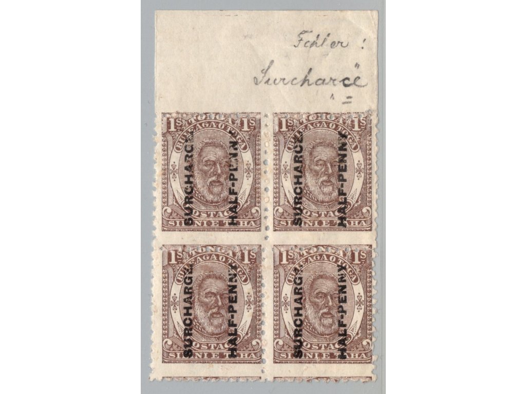 Tonga 1894, Mi. 22, x 0,5 d / 1 s, pravá horní DV Surcharce